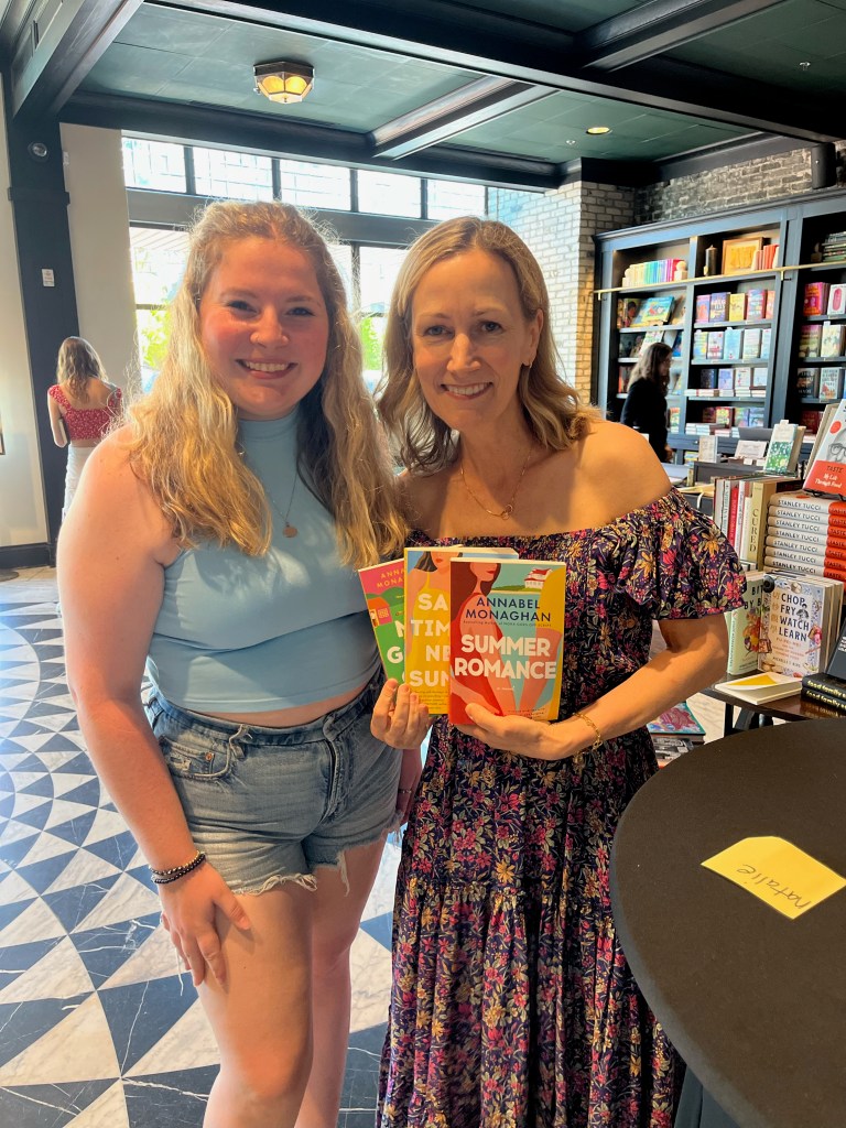 Annabel has written the three books she is holding in the photo with me above: Nora Goes Off Script, Same Time Next Summer, and Summer Romance. Her latest book, It’s A Love Story, comes out May 27, 2025. I had the pleasure of ARC reading this book as well, and my review will be coming out on publication day… or it’s already up on my Instagram!